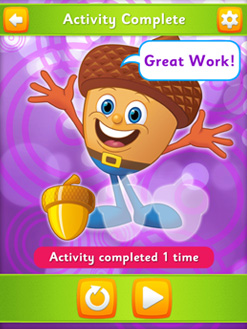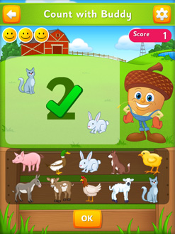 Eggy Numbers includes 7 fun numeracy games including Dot-to-Dot, Copy the Number, Draw the Number, Number or Not, Count with Buddy, Number Ring and Number Dominoes. There are also 138 golden acorns and 18 critters for children to earn by completing activities.